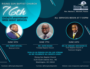 Pastor Marlow L. Mitchell and First Lady Pamela Mitchell, along with the Rising Sun family, welcomes you to explore our site, connect with us, and join us for any of our worship services, special events and outreach activities.